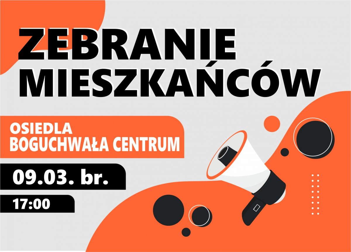 Zapraszamy na Zebranie Mieszkańców Osiedla Boguchwała Centrum w dniu 9 marca 2026 roku o godz. 17:00 w Miejskim Centrum Kultury w Boguchwale ul. Plac Rynek 2.