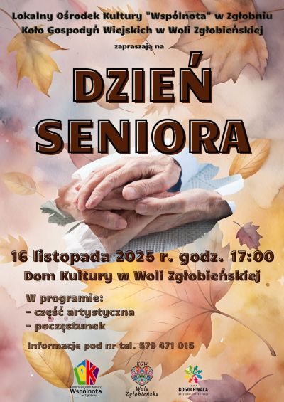 Lokalny Ośrodek Kultury "Wspólnota" w Zgłobniu wraz z Koło Gospodyń Wiejskich w Woli Zgłobieńskiej serdecznie zapraszają wszystkich Seniorów na wyjątkowe spotkanie pełne radości, wspomnień i serdeczności!