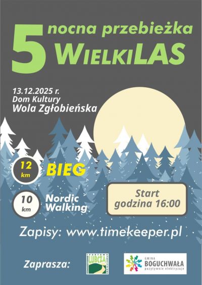 Już 13 grudnia 2025 roku odbędzie się 5. Nocna Przebieżka Wielki Las w Woli Zgłobieńskiej.
