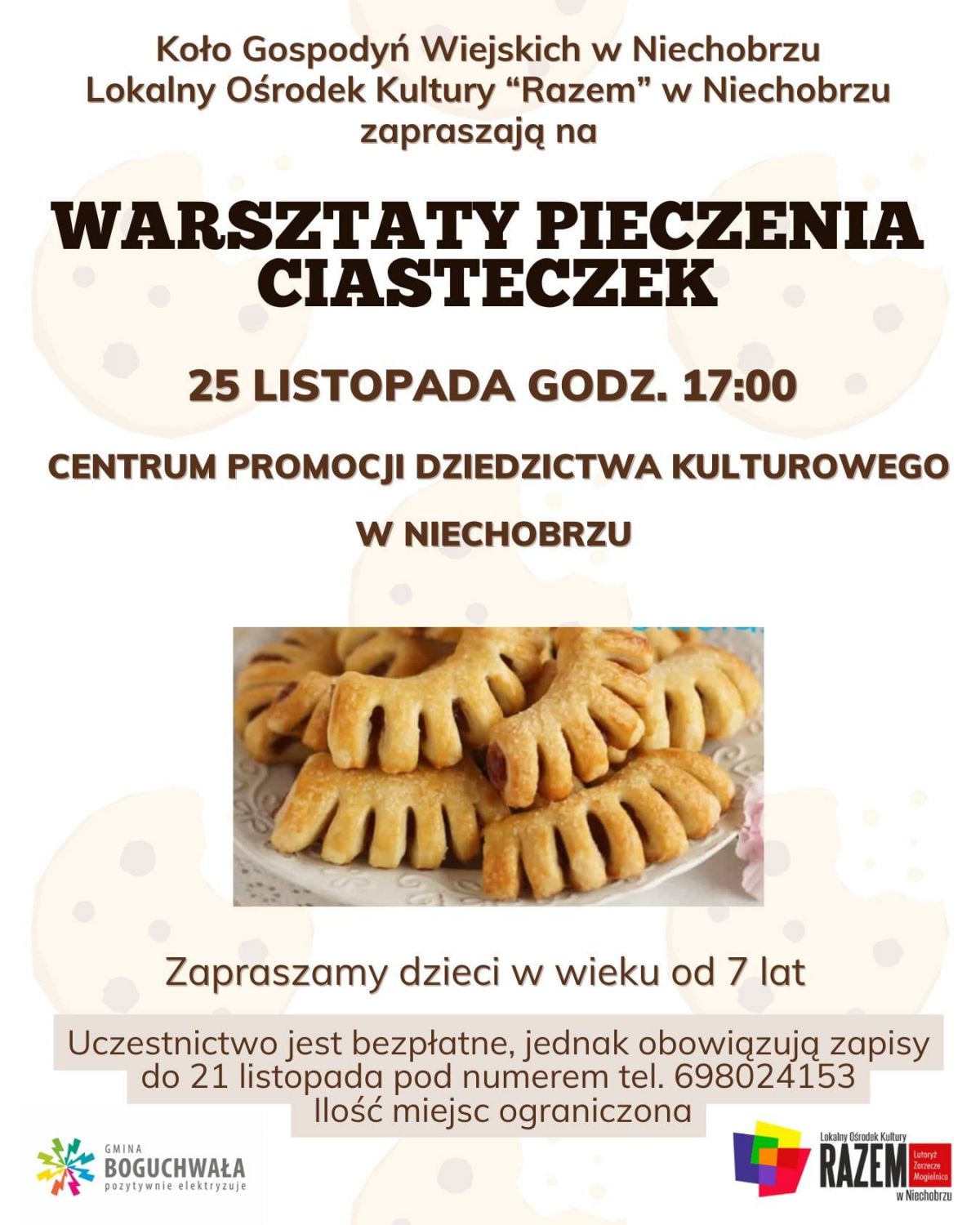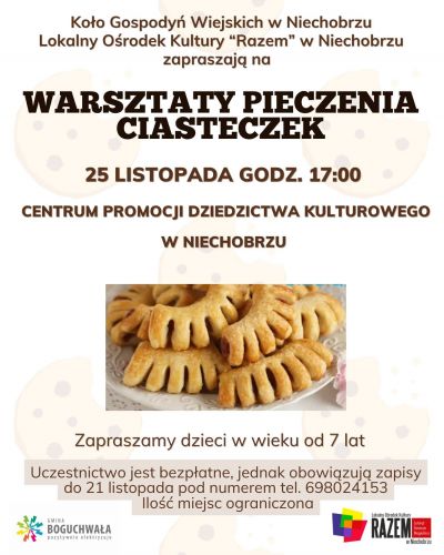 Koło Gospodyń Wiejskich w Niechobrzu zaprasza dzieci w wieku od 7 lat na bezpłatne warsztaty pieczenia ciasteczek!