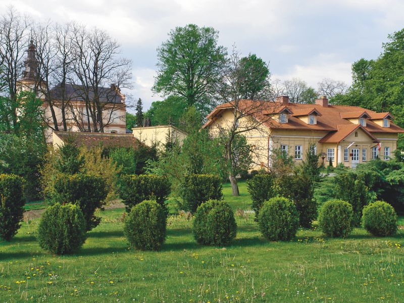 Ulica skręca w prawo, zostawiając po lewej stronie stary kościół parafialny, otoczony murem fundowanym przez Straszewskich z połowy XIX wieku, a po prawej stronie w otoczeniu jabłoni zabytkową plebanię z XVIII wieku. Przechodzimy w pobliżu pomnika Grunwaldu wzniesionego w 1910 roku z inicjatywy i finansowego wsparcia inż. Klaudiusza Angermana i znajdujemy się przy bramie dawnego, głównego wjazdu do zespołu pałacowego. Spotykamy tu figurę św. Jana Nepomucena. Mijając przystanek autobusowy - "Grunwald" docieramy do pałacu w Boguchwale - podziwiając pozostałości wspaniałego drzewostanu dawnego parku dworskiego.